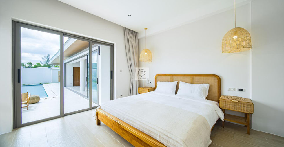 Inside, the villa boasts three sumptuous bedrooms, each with its own en-suite bathroom, as well as an additional guest bathroom. The living spaces are generous and bathed in natural light, highlighting the noble materials used throughout the villa. The Western-style kitchen, equipped with a central island, is a masterpiece of modern design and functionality, perfect for culinary enthusiasts.